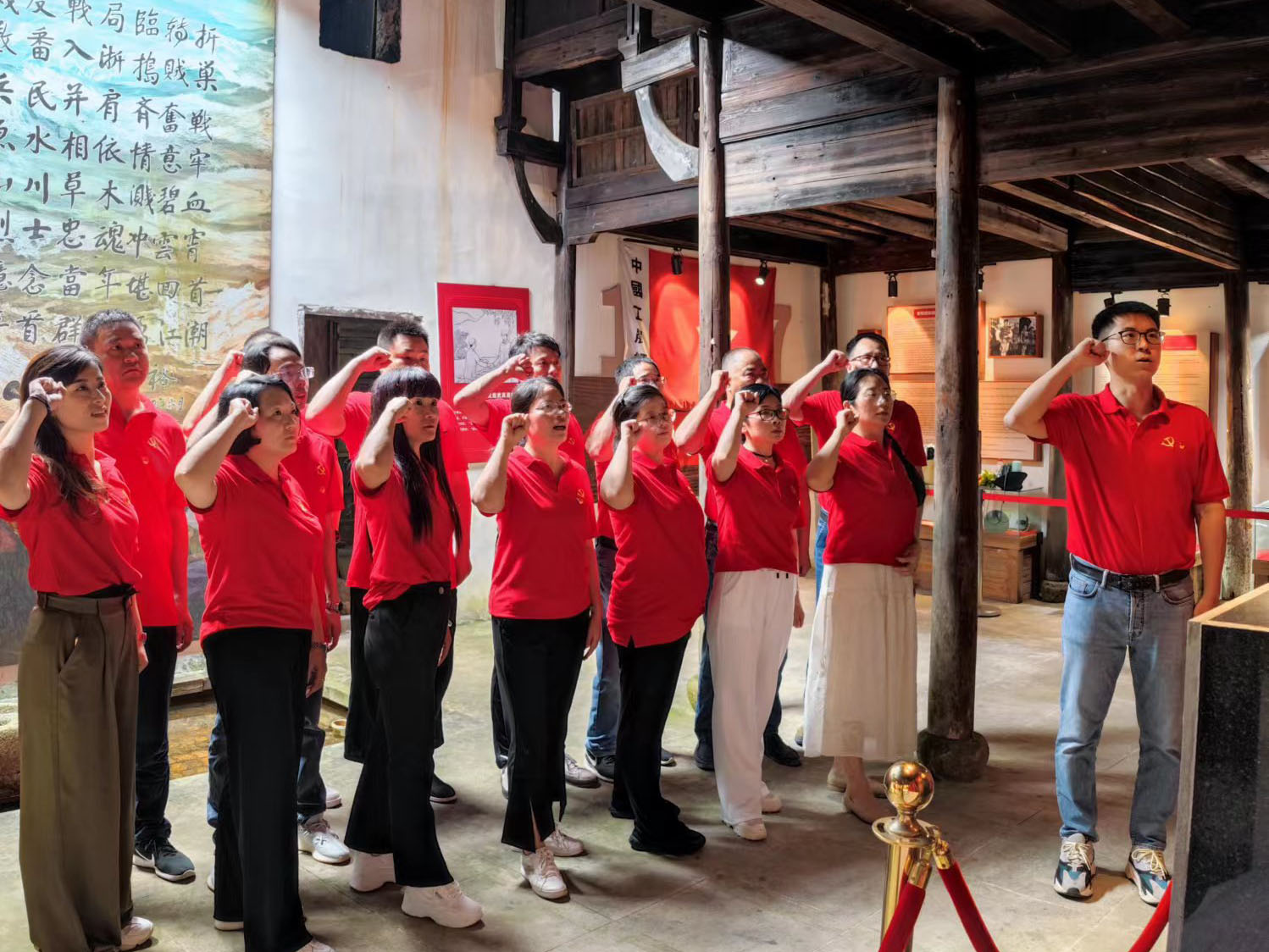 ? ? 金廈黨總支的黨員們在黨支部書記傅融的帶領下參觀了銀坑村粟裕將軍紀念館,感悟革命初心,重溫入黨誓詞。