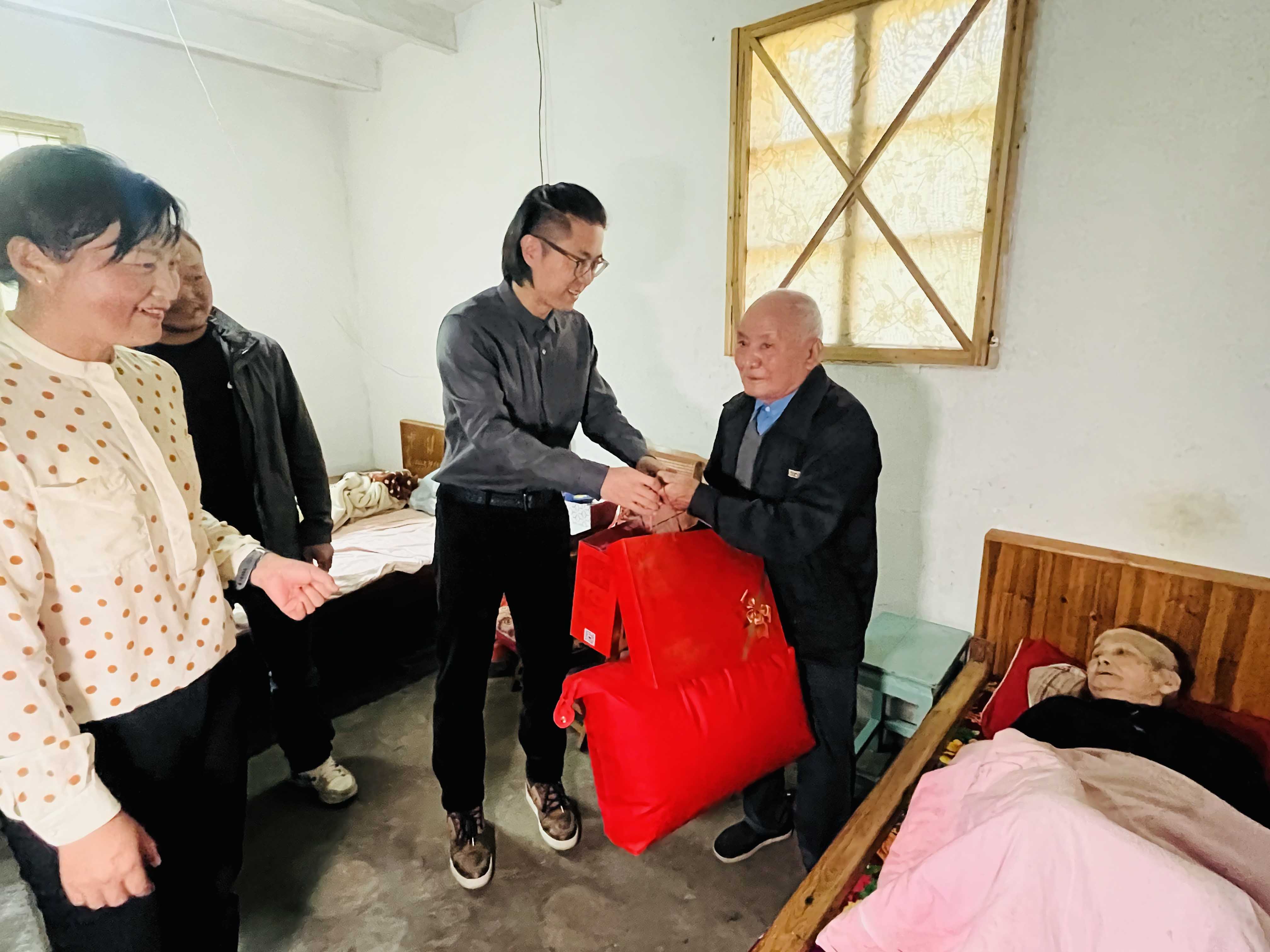 “重陽(yáng)節(jié)快樂(lè),祝你們健康長(zhǎng)壽!”在村領(lǐng)導(dǎo)的陪同下,蔣晨虹董事長(zhǎng)、傅融總裁一行走訪了村里的困難家庭,為他們送上慰問(wèn)金及食物、被子、洗浴用品等生活物資,并與他們親切交談,關(guān)心詢問(wèn)他們的身體狀況和生活情況。這不僅讓困難家庭感受到了社會(huì)的溫暖和關(guān)懷,也進(jìn)一步體現(xiàn)了金廈對(duì)弱勢(shì)群體的關(guān)注和支持。