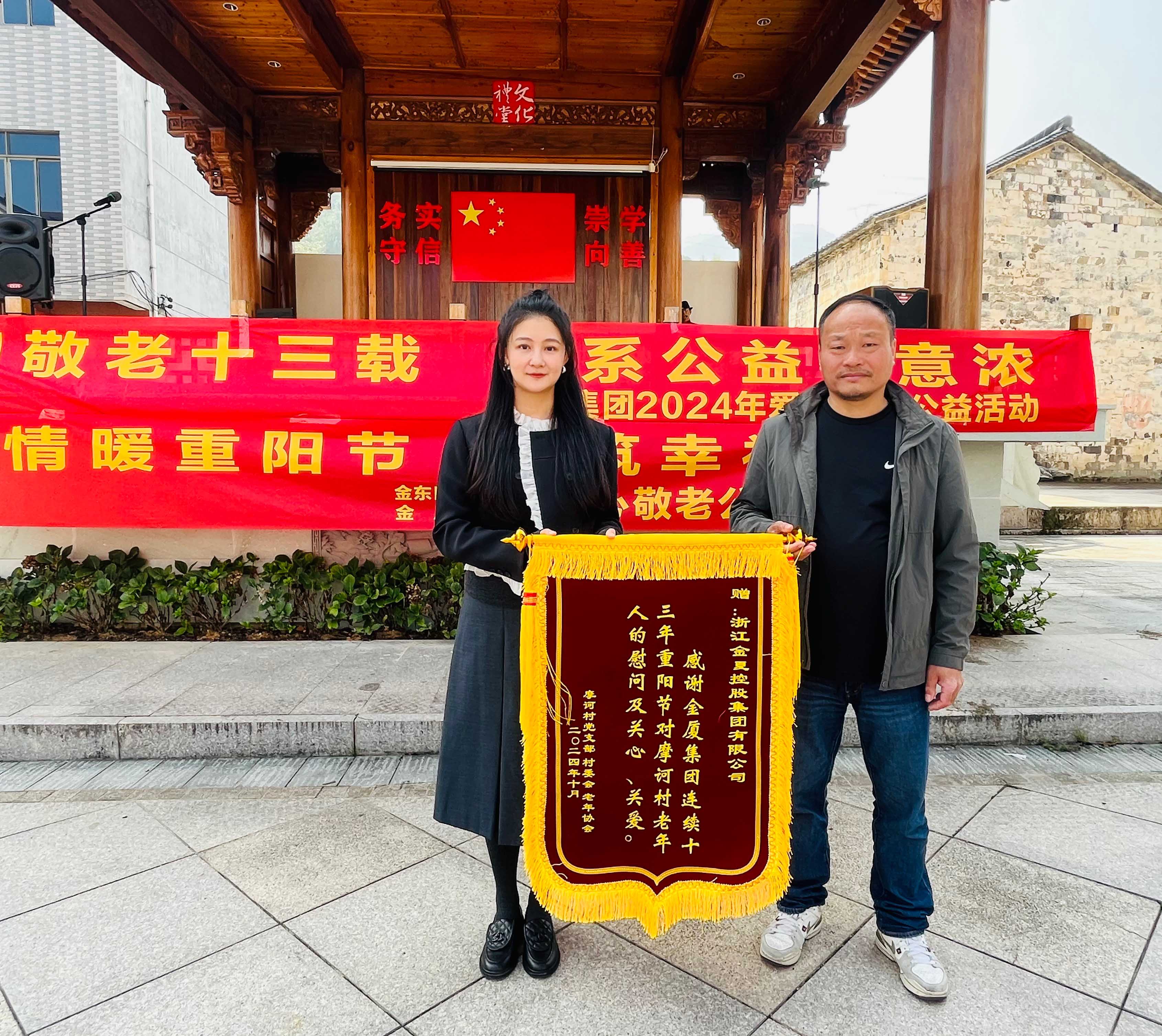 在2024年重陽(yáng)節(jié)即將來(lái)臨之際,為進(jìn)一步弘揚(yáng)中華民族尊老敬老的傳統(tǒng)美德,展現(xiàn)企業(yè)的社會(huì)責(zé)任感, 10月10日上午,金華市政協(xié)委員、金廈集團(tuán)董事長(zhǎng)蔣晨虹率集團(tuán)高管及各條線負(fù)責(zé)人一行再次前往金東區(qū)嶺下鎮(zhèn)摩訶村,開(kāi)展“情暖重陽(yáng)節(jié),共筑幸福夢(mèng)”重陽(yáng)慰問(wèn)活動(dòng),為村里老年人和困難家庭送上慰問(wèn)金、慰問(wèn)品,并通過(guò)豐富多彩的活動(dòng)為大家送上節(jié)日的美好祝福。這也是金廈集團(tuán)連續(xù)第13年開(kāi)展重陽(yáng)節(jié)助老公益活動(dòng)。