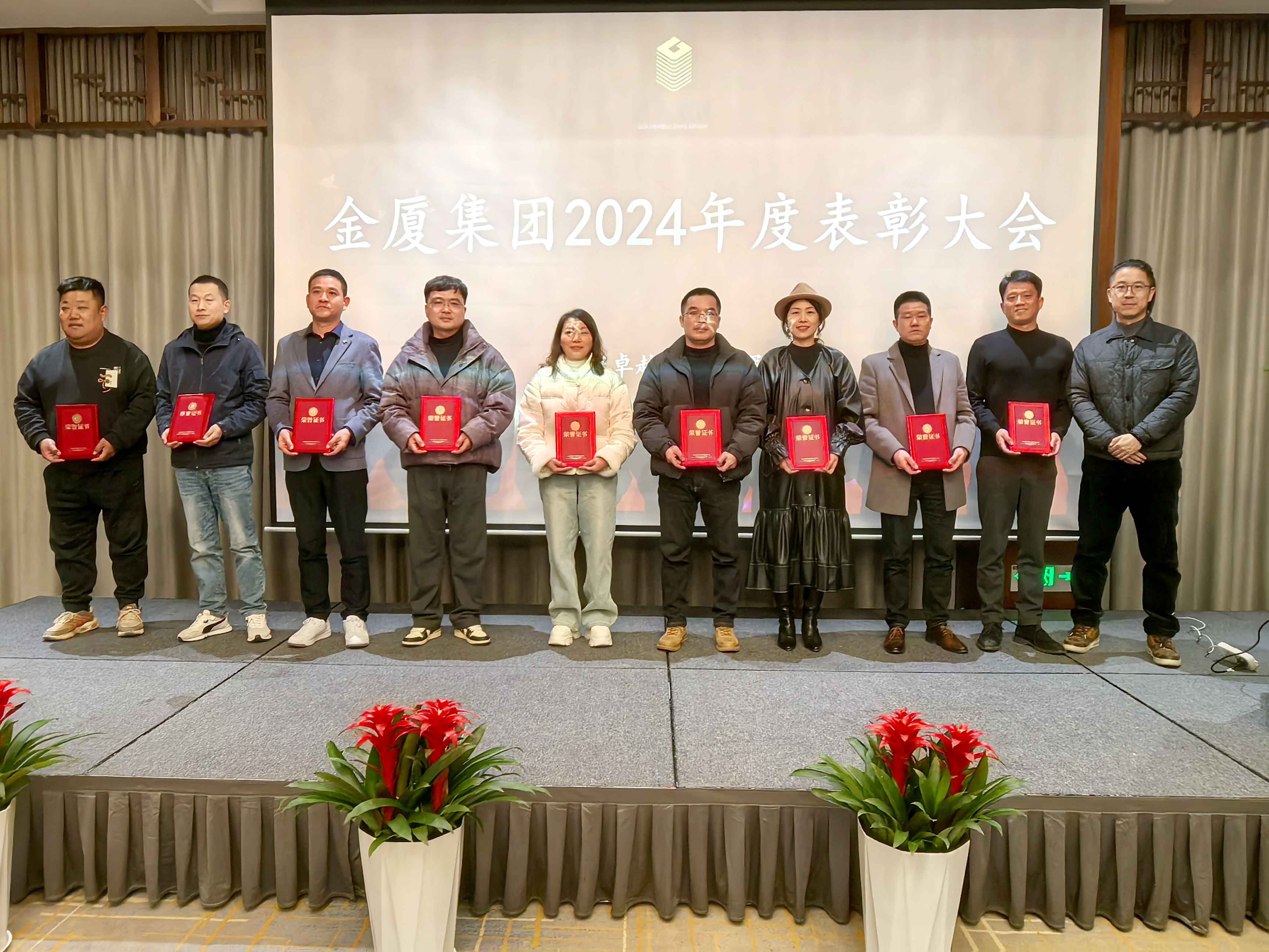 歲序更替,靈蛇迎瑞。值此歲末年初之際,1月15日(臘月十六),金廈集團(tuán)在金華君瀾大飯店召開2024年度工作會(huì)議。集團(tuán)董事長蔣晨虹、總裁傅融攜集團(tuán)高管及總部中層及以上管理人員、各子公司經(jīng)營班子成員近50人齊聚一堂,共同總結(jié)過往、暢敘未來,明晰思路、謀篇布局。會(huì)議由集團(tuán)副總裁邵建根主持。